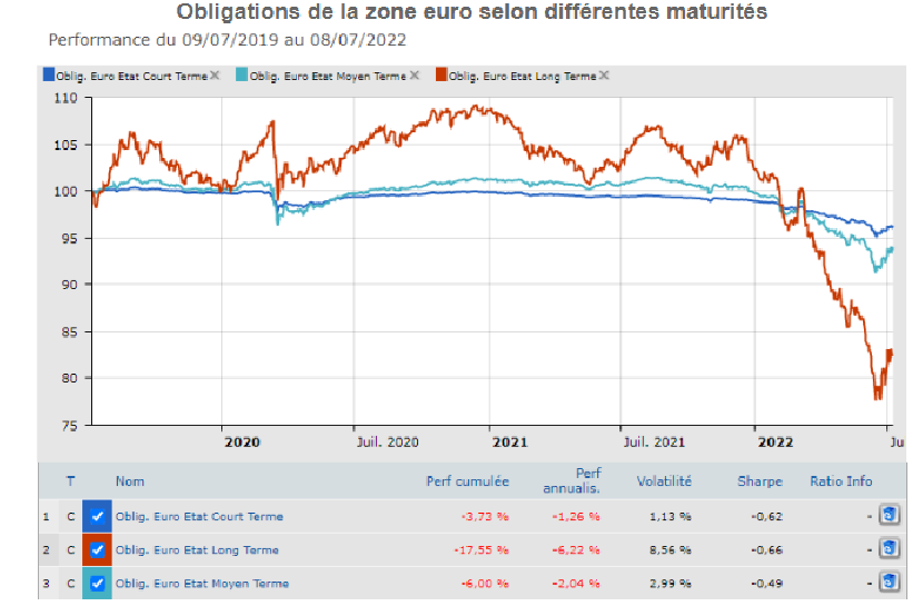 Et déjà près de -20% sur les obligations d’Etat à long terme de la zone euro :