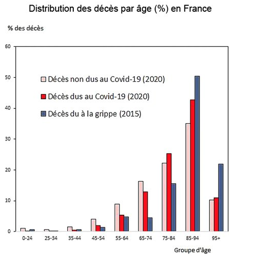 Le 21 avril 2020, une étude de l’Institut Pasteur montre que « le taux de létalité réel du Covid-19 en France » est inférieur à 1% et compris entre 0,5 % et 0,7 % et augmente avec l’âge. Soit des taux comparables à la grippe saisonnière selon les tanches d’âge.